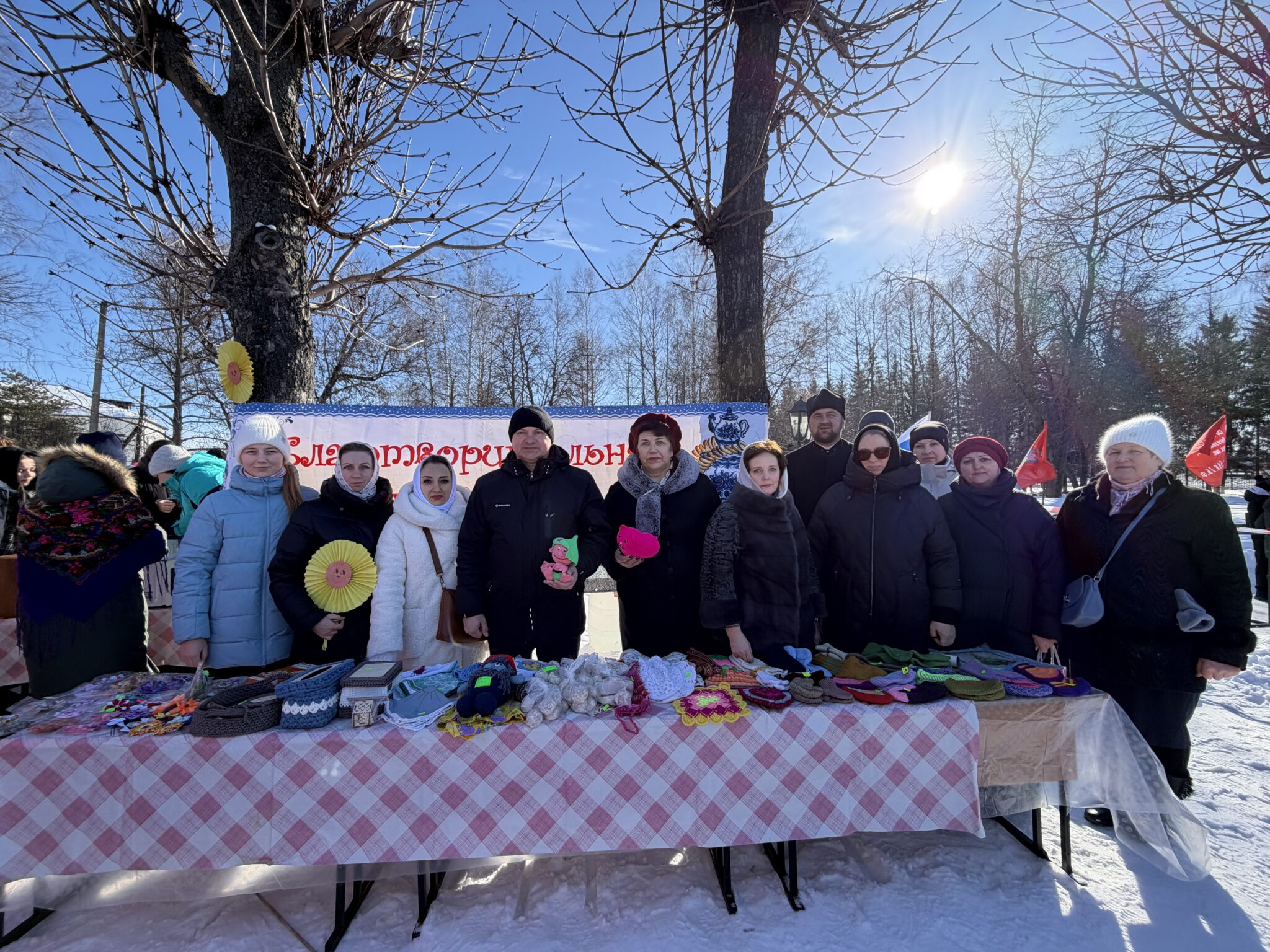 Особую атмосферу торжеству придала благотворительная ярмарка, организованная общиной монастыря святой Марии Магдалины. Все желающие могли приобрести поделки ручной работы, изготовленные нашими мастерицами и воспитанниками воскресной школы. Здесь же развернулась традиционная трапеза: всех гостей праздника угощали блинами и горячим чаем.
